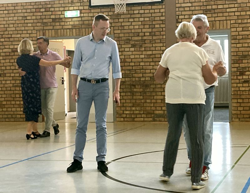 Unter fachkundiger Anleitung von Marc Hartung-Knöfler – unser Trainer und erfahrener Tänzer – wurden die Grundschritte sowie erste Drehungen in den Tänzen Cha-Cha-Cha, Rumba, Tango und Langsamer Walzer vermittelt. Trotz erster Herausforderungen meisterten die Teilnehmerinnen und Teilnehmer die Übungen mit großem Einsatz – und vor allem mit sichtbarem Spaß an der Bewegung und der Musik.